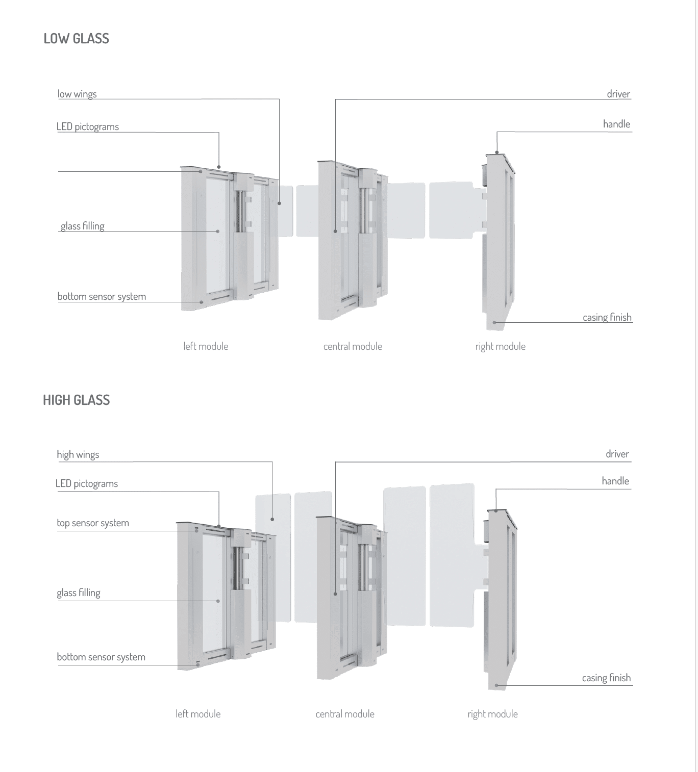 | Control System | Screen with a keypad for configuration and device settings. Control possible via dry contact (ground control). Feedback signal indicating person passage. Compatible with access control devices designed for gate control. |